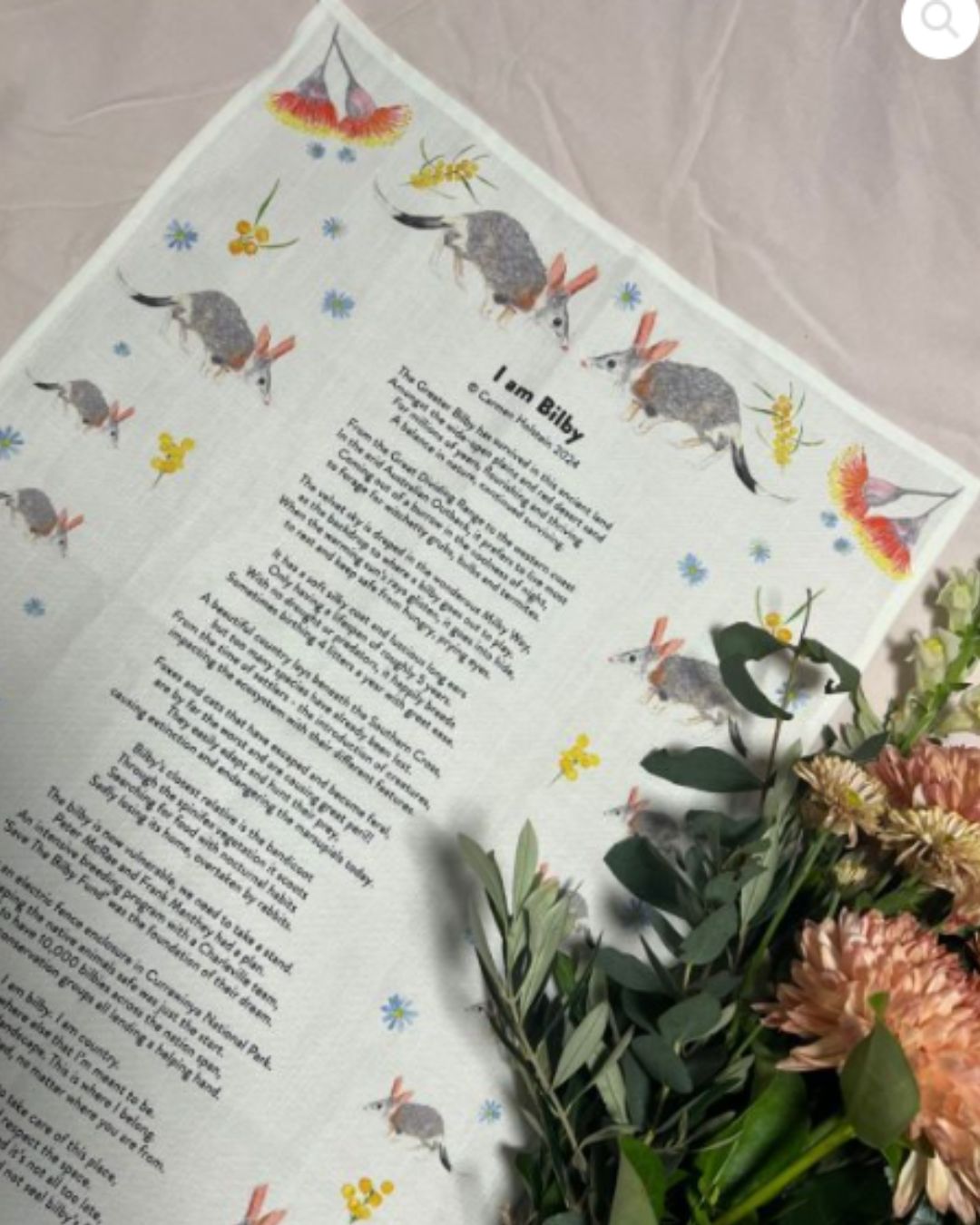 This is my first collaboration - and working with the Save The Bilby Fund and Carmen Holstein (who has written this original poem for their unique Tea Towel) has been amazing.