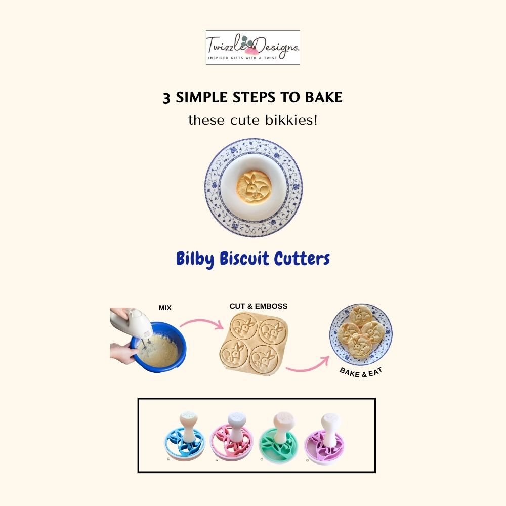 Introducing our unique, easy to use, Bilby Biscuit Cutter - and make bilby bikkies in 3 simple steps.
